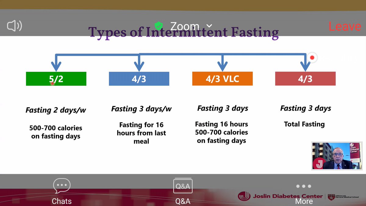 كما اضاف ان الوجبات التي تحتوي على كميه قليله من السعرات تحافظ على مستوى السكر بشكل جيد وتقلل الوزن