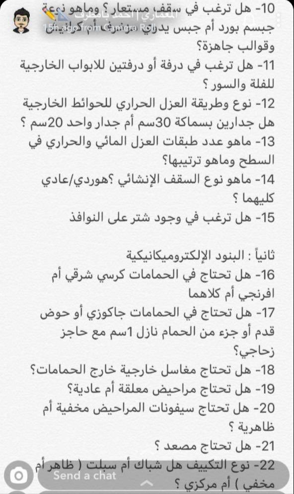 فعلياً.. خذها خطوة خطوة.. ركز في البداية على المخططات اللازمة للشروع في تنفيذ العظم.. معماري/إنشائي/كهرباء/سباكة، لكن عشان يكون عندك مخطط كهرباء وسباكة على الأصول لازم يكون عندك مخطط توزيع أثاث، كذلك تحتاج مخطط للتكييف سواء مخفي أو سبلت، الواجهات مهمة لأنه يفضل تنفيذها انشائياً.