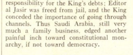 ٦- الصراع بين المحافظين والمجددين قديم قدم بلادنا، ولا يزال الصراع قائماً حتى اليوم. ولولا تدخل الحكومة في الصراع لطارت رقاب كثير من المثقفين المتنورين.