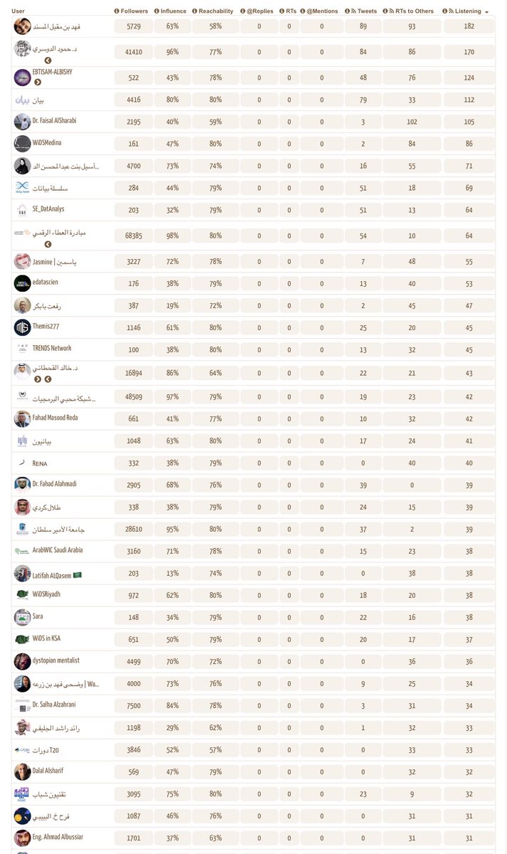 أخيرا من يقود دفة هذا الحراك وينشر محتوى حول علم البيانات. الصورة المرفقة هي قائمة بأكثر الأشخاص نشاطا في هذا المجال بنشر محتوى ويأتي على مقدمتهم: