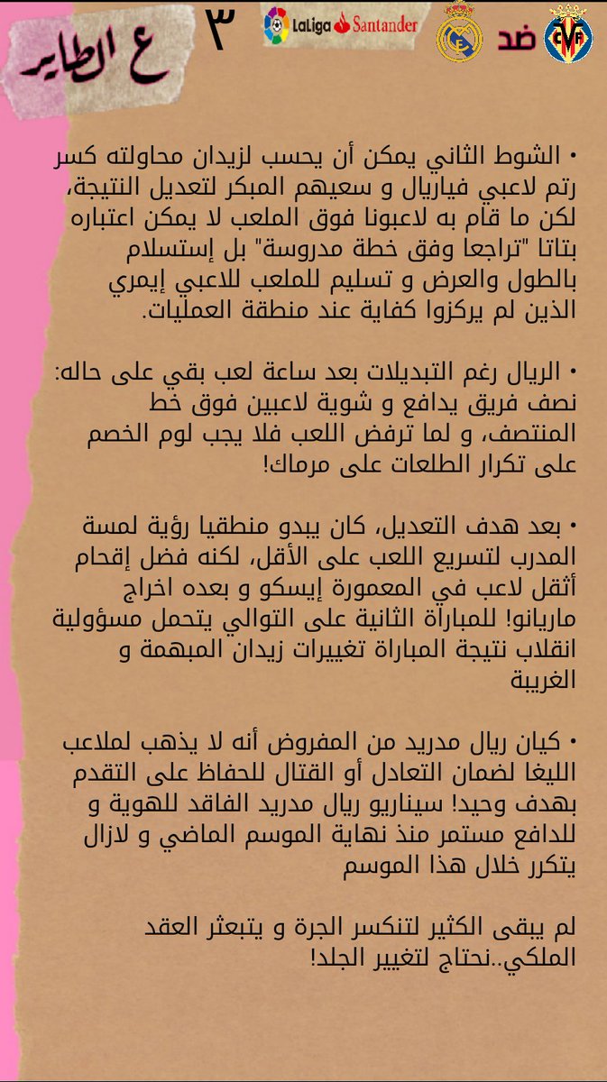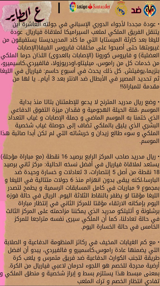 مقال ع الطاير لمباراة فياريال ضد ريال مدريد