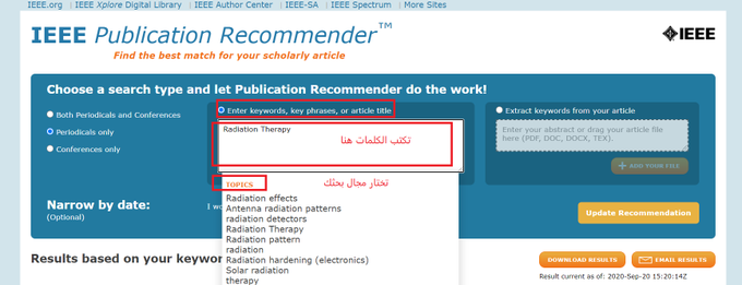 للعثور على المجلة أو المؤتمر اللي يكون مناسب لنشر بحثك