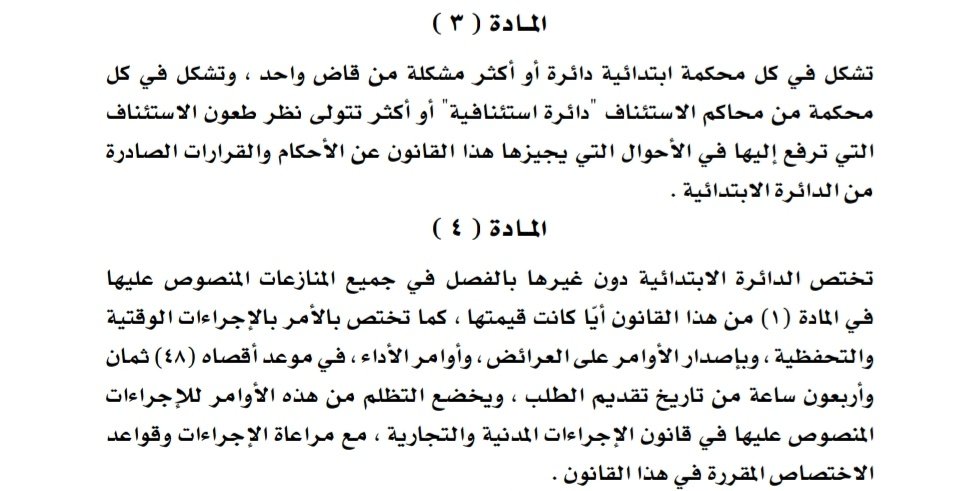 جاء القانون بشكيل نوعي وقيمي جديد بخلاف المعهود سابقا، فتشكل دائرة من قاضي فرد بصرف النظر عن قيمة الدعوى.