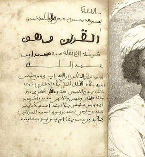 22=كتبها ديالو خلال فترة عبـ.ـوديته من ذاكرته والرائع حقا، أن أيوب ديالو لم يكن مهتمابأن يظهر في تلك اللوحة النادرة بشكل جميل أو وسيم، بل كان كل ما يفكر فيه هو أن يظهر تمسكه بثقافته ودينه وروحه،ويؤكد لكل من يشاهد الصورة أنه ظل متمسكابهويته كمسلم أفريقي على مدارسنوات العبـ.ـودية⬇️