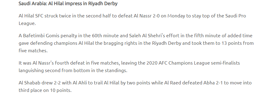 💥💥 تحت هذه التغريدة بإذن الله تغطية "حصرية" لما كتبته المواقع والصحف العالمية بعد نهاية #ديربي_الرياض
