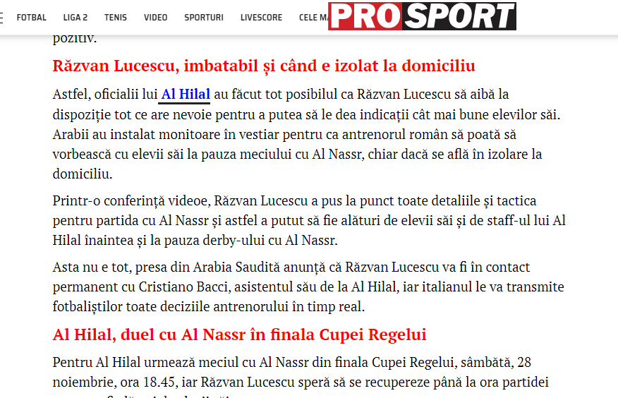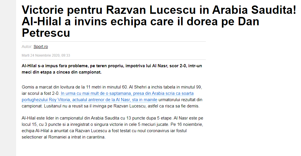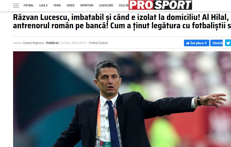 💥 صحيفة "ديجي سبورت" الرومانية| "رازفان لوشيسكو لا يُهزم في الحجر الصحي! فاز #الهلال بالديربي أمام #النصر 2 ـ 0. عرف المدرب ببراعة واقتدار كيف يقود فريقه في العزلة بعد أن ثبتت إصابته بفيروس كورونا. سيلتقي الفريقان مرة أخرى يوم السبت المقبل في نهائي كأس الملك".