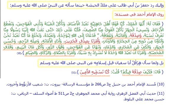 وهذا رد جعفرَ بنَ أبي طالب على ملكُ الحبشة حينما سأله عن النبيِّ صلى الله عليه وسلم:"شاهد الصور".