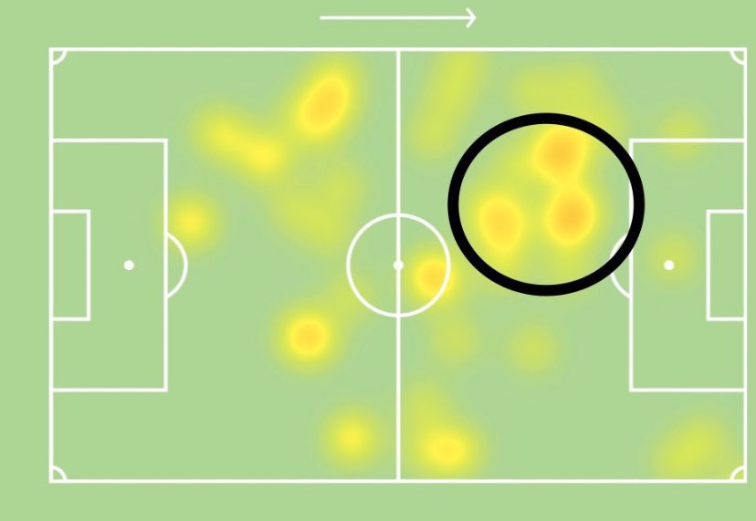 نستنتج من هذه اللقطات ان فييتو يفضل وضعيته بعمق الملعب على تواجد على الأطراف , وخطورته تكون اكبر من يستلم بأنصاف المساحات بالقدم العكسية .