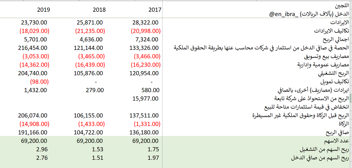التحليل المالي للجين على السريع للفترة 2017-2019 :