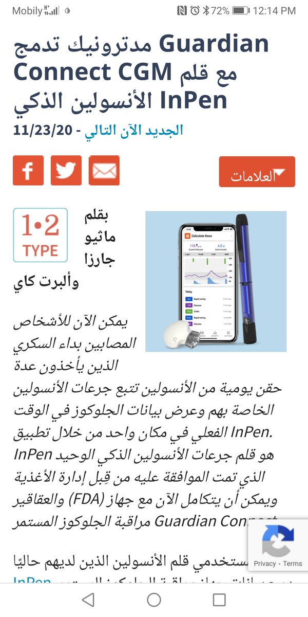 ميدترونيك تعلن إندماج قلم الإنسولين الذكي insulin Inpen مع جهاز CGM الخاص بها