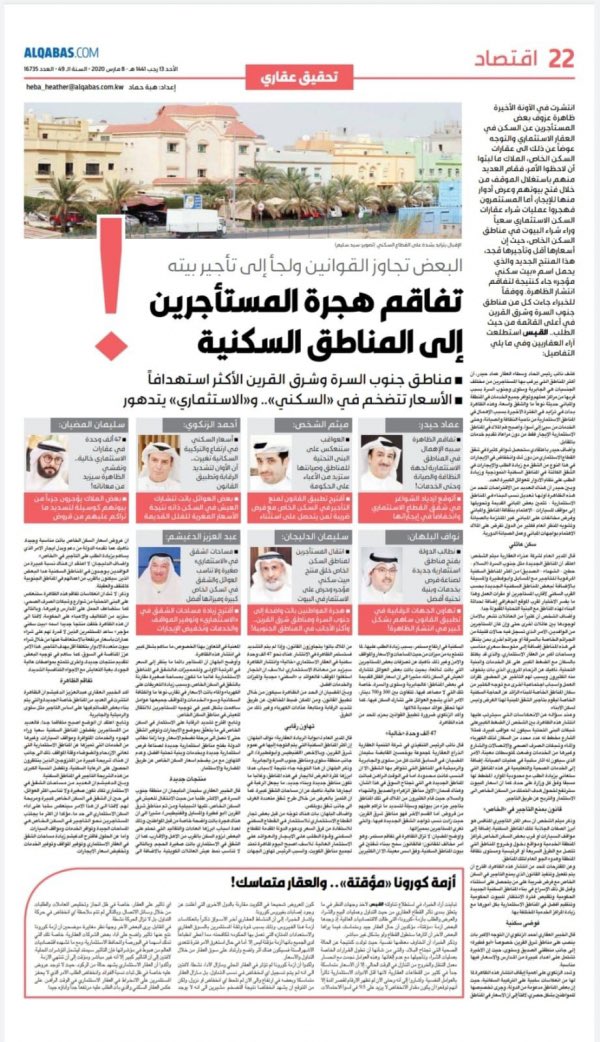 15.حل الأزمة الإسكانية في الكويت يكون من خلال تنظيم السوق وإقرار التشريعات والحلول الواقعية والتفكير خارج الصندوق، وبالتالي: