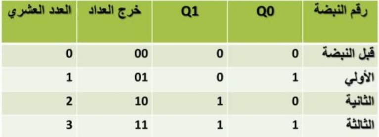 - تعمل العدادات الرقمية بالنظام الثنائي مثل تسلسل العد من000 إلى111بما يناظر العد العشري من0 إلى7 و هو ما يسمى معامل العد
