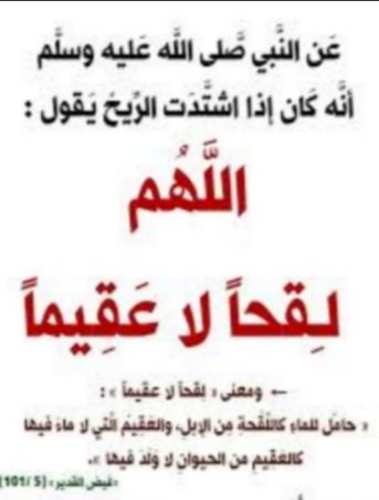 (لا تسبوا الريح، فإنها من روح الله؛ وسلوا الله خيرها وخير ما فيها وخير ما أرسلت به، وتعوذوا من شرها وشر ما فيها وشر ما أرسلت به)