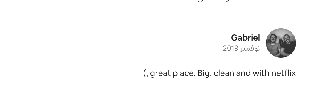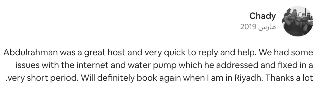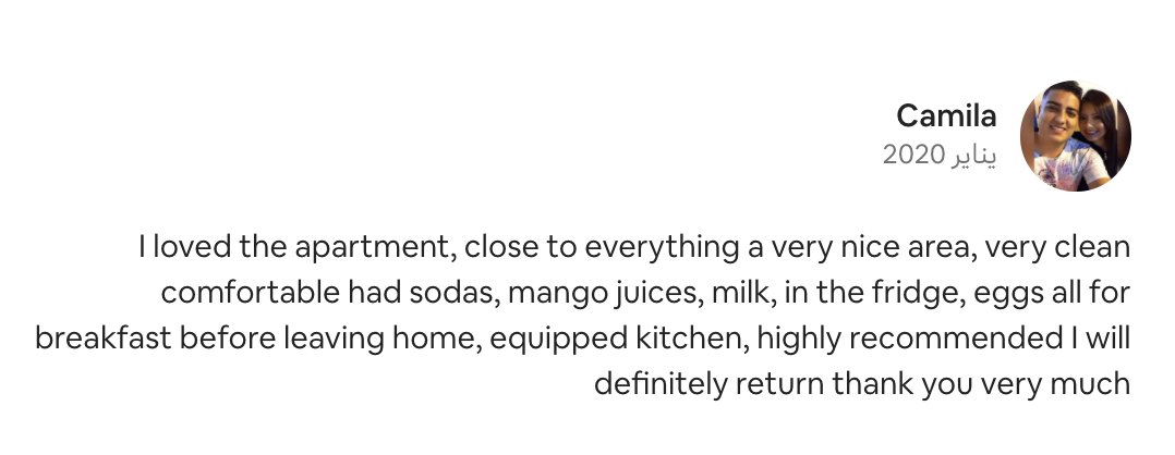 •كنت من القليلين الي يقدم خدمات متكاملة ويعرف احتياجات السياح (انترنت الياف،مكينة قهوة،قنوات مباريات،نتفلكس)
