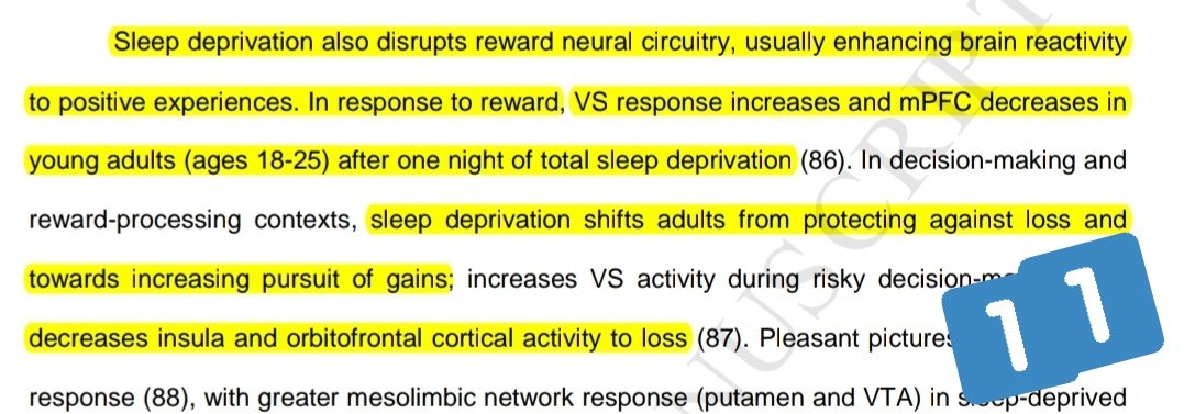 النوم الجيد العميق يضبط الغرائز والسهر يزيد الرغبة في الحصول على المكافئات الدماغية بتقليل التفكير بخطرها وزيادة حساسية الشعور الايجابي في الدماغ بعد الحصول عليها كذلك يؤدي للاكتئاب