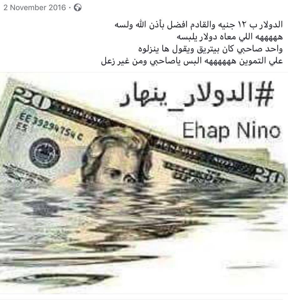 حيث كان سعر صرف الدولار امام الجنيه المصري ينخفض من ١٥ جنيه للدولار وصولا الى اقل من ١٠ جنيه للدولار في السوق السوداء ... او ينهار كما في الصور !