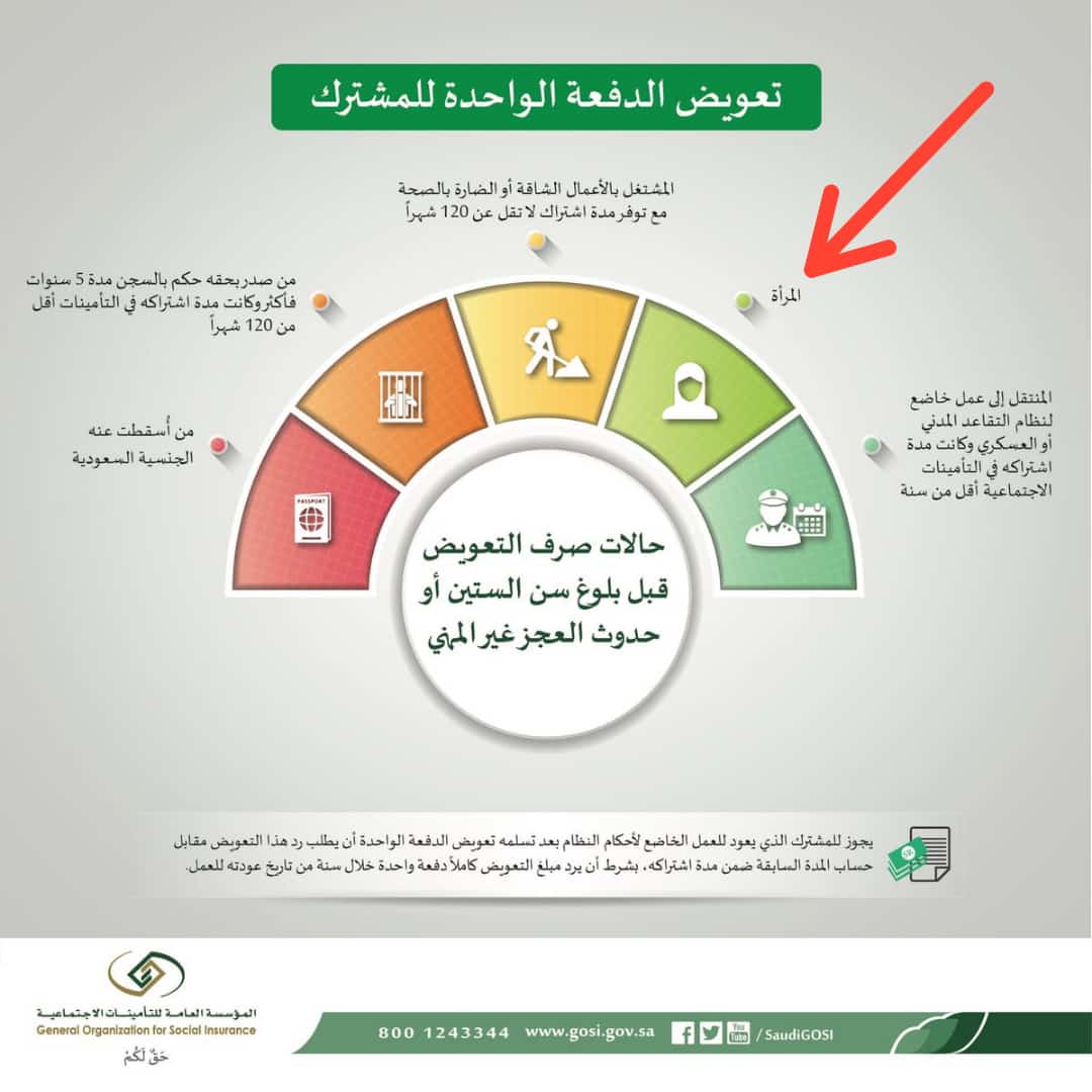 - من حالات صرف تعويض الدفعة الواحدة ( أن يكون المشترك إمراة )