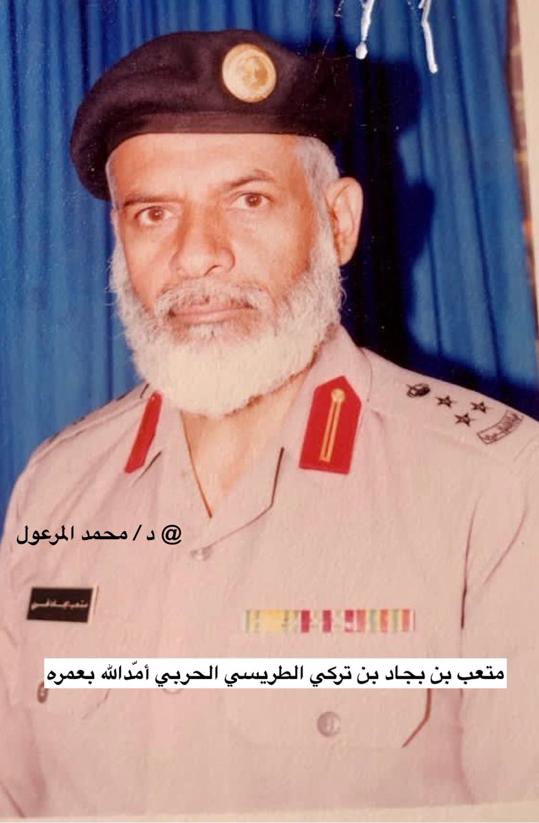 1️⃣متعب بن بجاد بن تركي الطريسي الحربي أمّدالله بعمره ولدفي #الرس في 1362هـ درس الإبتدائية بالسعودية والمدرسة العسكرية بالرس ثم درس بالمتوسطة العسكرية ببريدة وفي عام 1382هـ إلتحق بالثانوية العسكرية بالرياض ولم يكملها ثم إلتحق بكلية الصناعات بالرياض و درس بها سنتين