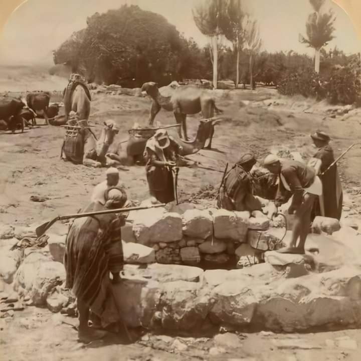 7-وتدور أبقار فى وسطها تنقل الماء من أسفلها ولها طريق إلى الماء ينزل البقر إلى معينها فى مجاز وجميع ذلك حجر منحوت ليس فيه بناء وقيل أن أرضها مسماه أرض بركة الفيل وماؤها عذب 👇