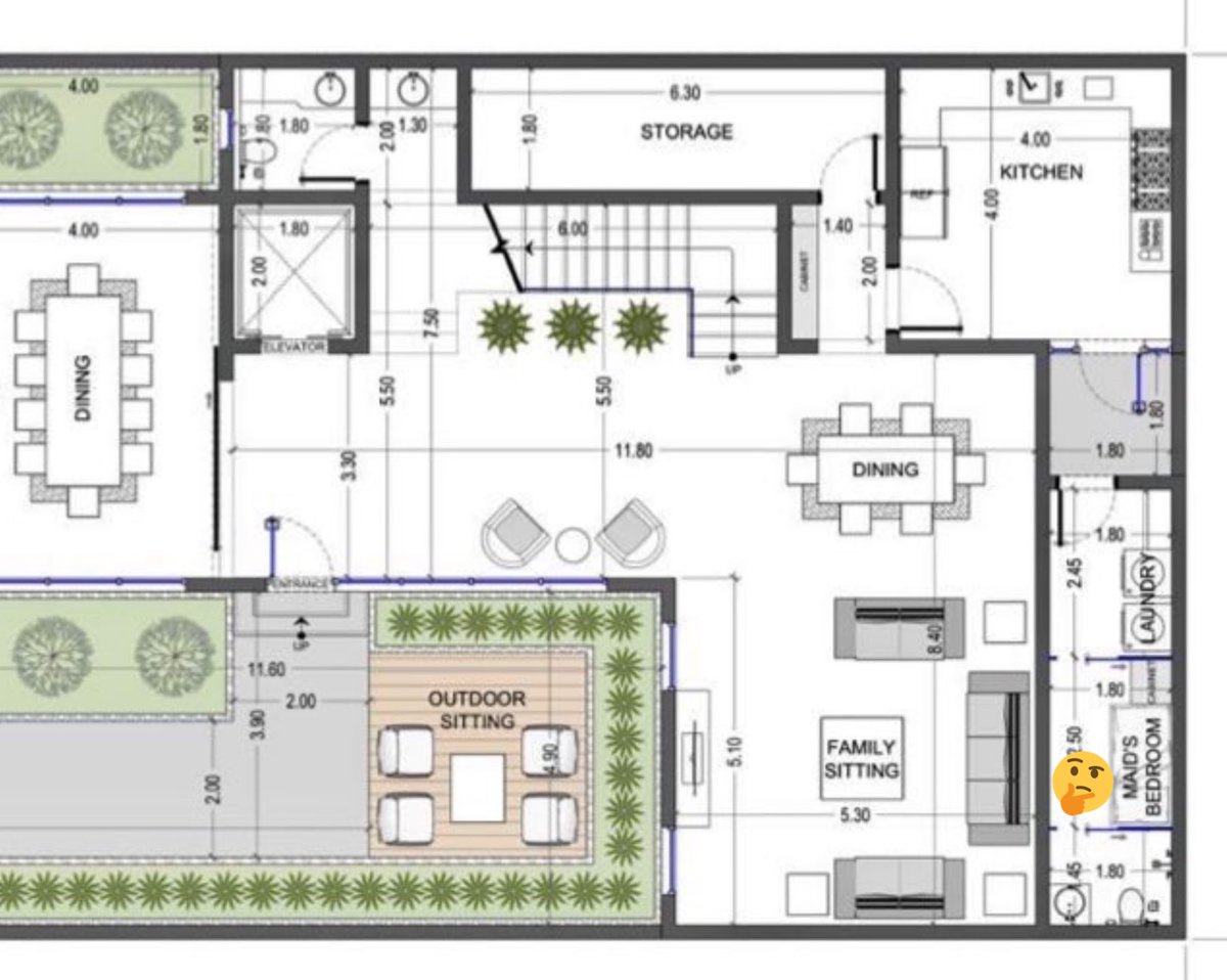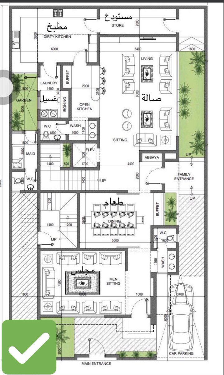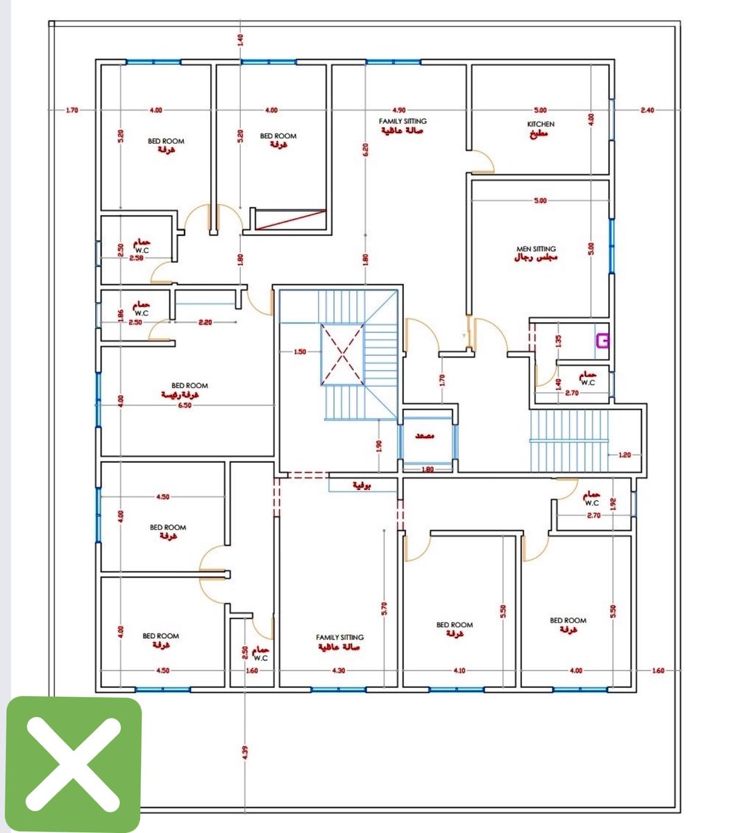 ❌ خطأ واضح ولا يحتاج لتوضيح أكثر. إنظر لنسبة مساحة صالة المعيشة بالمقارنة مع نسبة المساحة المخصصة للضيوف. ضيق الصالة وسعة المجالس .