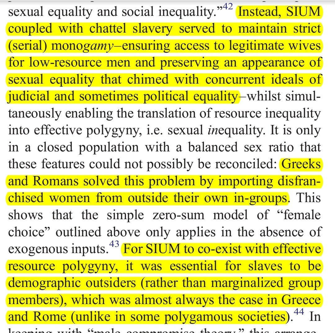 ملاحظات الجنس من غير توثيق حقوق ملزمة من الرجل للمرأة نتيجته السلبية أكثر على المرأة والمجتمع لذلك قرر الاغريق والرومان أن يقروا الزواج الأحادي كوسيلة وحيدة لإيجاد الأبناء الأحرار أما أبناء الرقيق ونسائهم فهم درجة أدنى