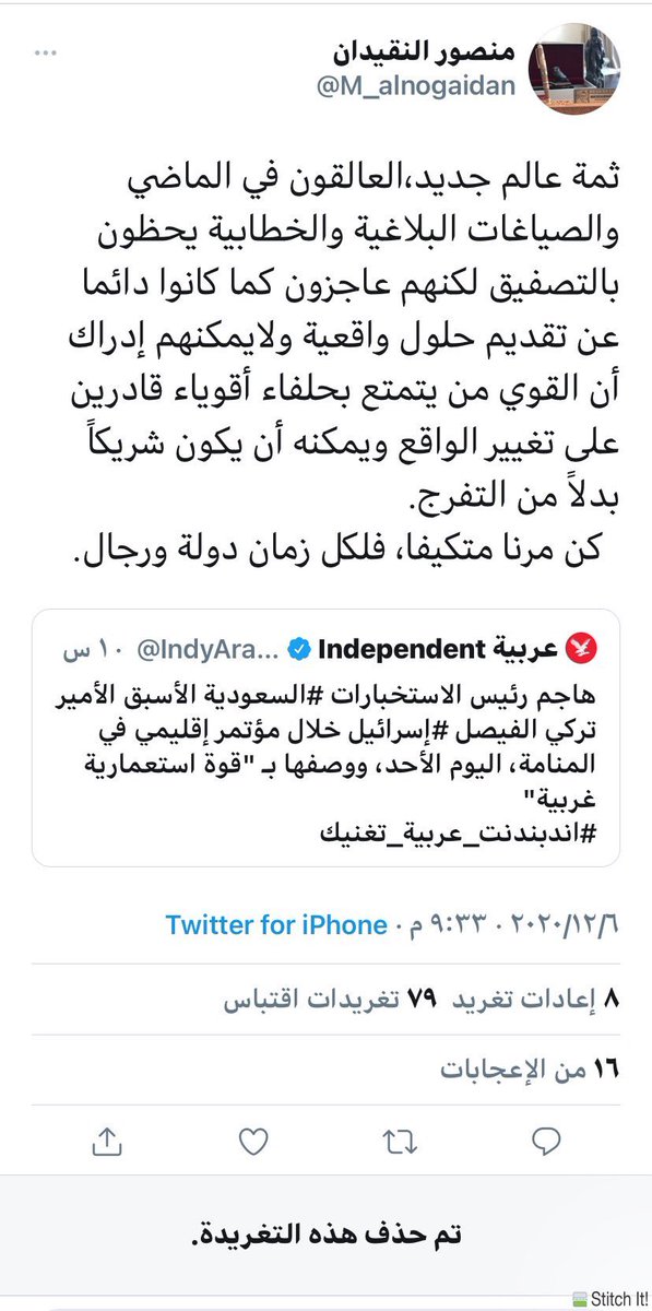 السعودية تعرف جيداً ماسبق ذكره. وياليت الذين يتفلسفون يتركوا السياسة لاهلها لن تخبروا السعودية ماعليها فعله ولن تستمع لكم هي تتصرف حسب ماتراه الانسب وليس على ماتراه انت الصح والسعودية ايضا دولة لاتكابر اذا أخطأت تبادر بتصحيح الخطأ ويكون اضافة خبرة وتجربة مع ماسبق من الخبرات