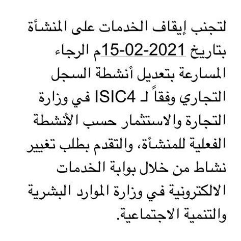 لتجنب إيقاف الخدمات على المنشأة بتاريخ 15-02-2021م الرجاء المسارعة بتعديل أنشطة السجل التجاري وفقاً لـ ISIC4 في #وزارة_التجارة والاستثمار حسب الأنشطة الفعلية للمنشأة... ثم التقدم بطلب تغيير نشاط..
