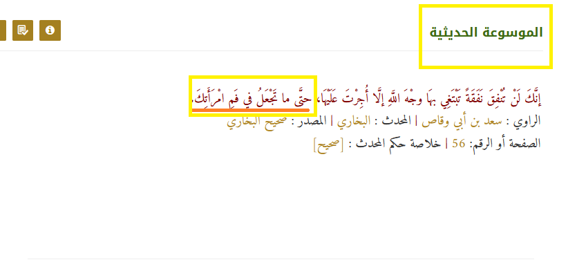 (5/9) ومن الاحاديث التي تحث على الاحسان للزوجة هو أن النبي"صلى" اعتبر وضع الرجل اللقمة في فم زوجته نفقة يؤجر عليها.