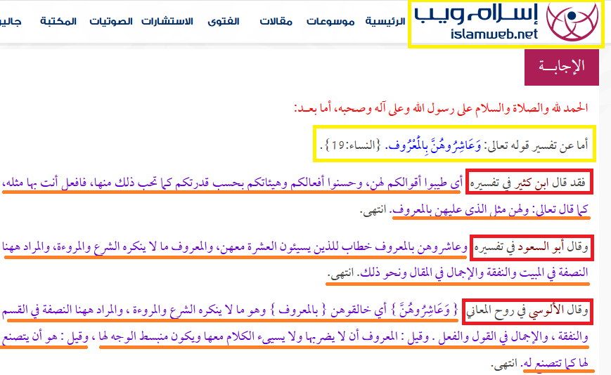 (3/9) ومن الايات القرانية التي امرت بالاحسان للزوجة و معاشرتها بالمعروف وان يقوم الرجال بتحسين اقوالهم وأفعالهم وهيئاتهم لنسائهم قوله تعالى: { وَعَاشِرُوهُنَّ بِالْمَعْرُوفِ}-(النساء:19).