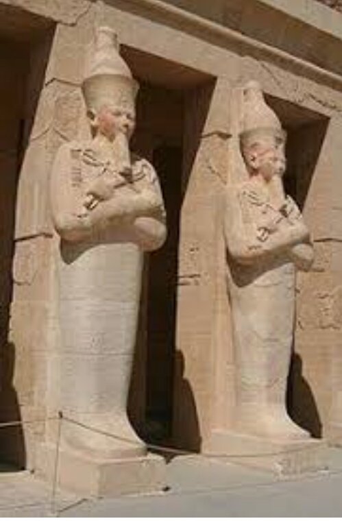 يعتبر سننموت حالة فريدة في تاريخ مصر القديمة فإسمه فى أفضل الأماكن المميزة في المعابد ويصور هو وحتشبسوت أمام الآله 👇