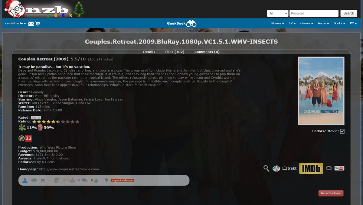 تدخل على موقع NZBgeek وتحمل اي فلم بصيغة NZB