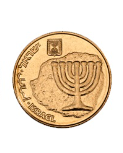 1- هذا هو أحد وجهي العملة المعدنية (10 أقورة) وهي جزء من الشيكل، ويظهر عليها: