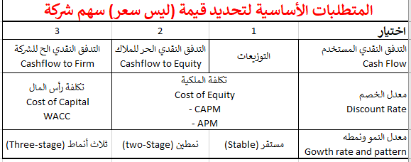 أخيرا، كل ما ذكر في الأعلى هو تطبيق لنموذج خصم التدفقات النقدية ولكن الاختلاف هو أني استخدمت المعايير اللازمة لبناء النموذج حسب توصيات دامودران.