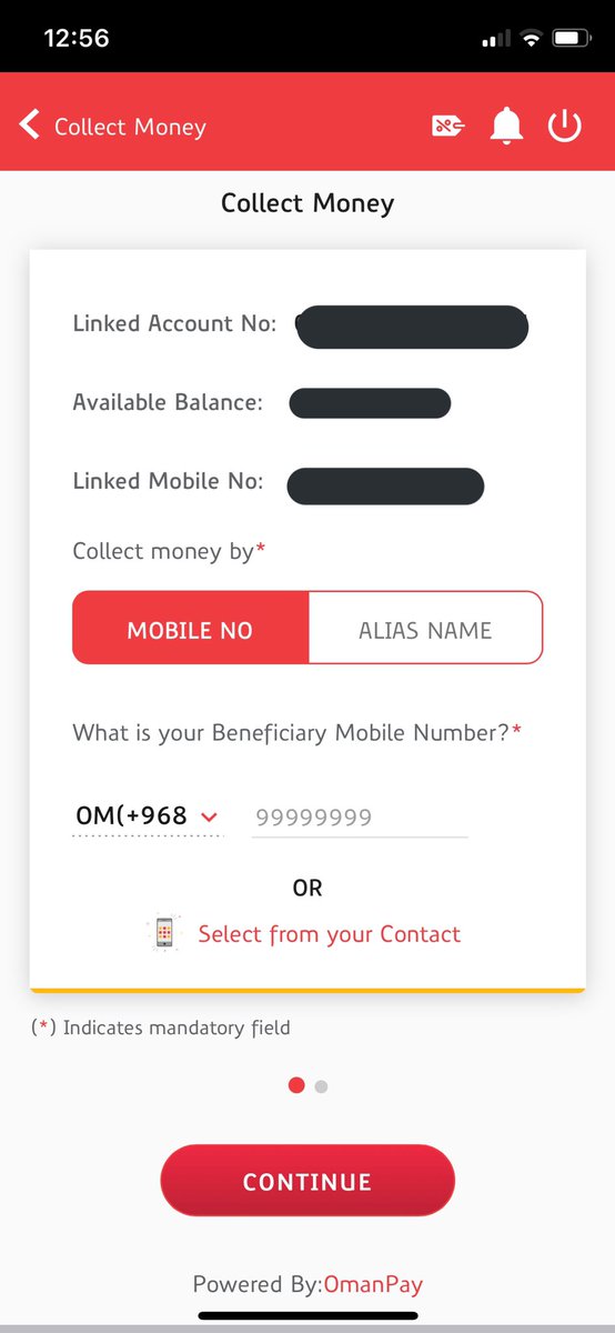 في تطبيق بنك مسقط تقدر ترسل لشخص/ اشخاص طلب مالي يعني تطالب اصحابك اللي رحت معهم المطعم بعد ما قسمتوا المبلغ والخطوات التالية بتشرح الطريقة بالتفصيل.