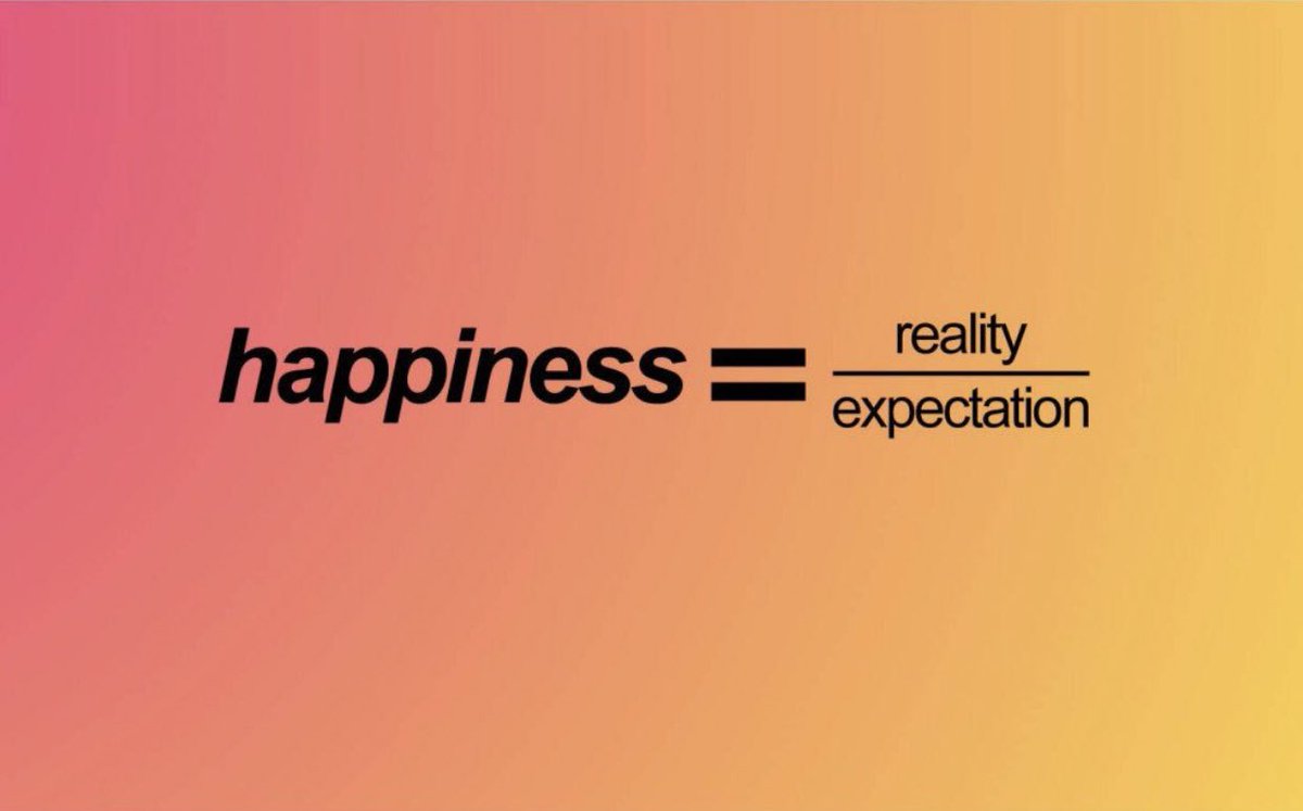 أيضا، ممكن صياغة المعادلة بشكل آخر، سعادتك في علاقة طردية مع انجازاتك او حصولك على كل ماتتمنى وعكسيا مع توقعاتك، وكون أنه من المستحيل ان يحقق الانسان كل ما يتمنى لاصطدام اغلبنا بالواقع الذي يقاوم رغباتنا في أوقات كثيرة،تبقى افضل وسيلة للسعادة هي خفض سقف التوقعات