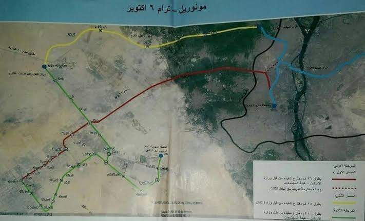 مونوريل6أكتوبر سينطلق من شارع وادى النيل فى المهندسين مرورا بالطريق الدائرى والمريوطية والمنصورية وتقاطع طريق القاهرة-الإسكندرية الصحراوى والشيخ زايد وميدان جهينة وهيئة المجتمعات العمرانية والحصري ودار الفؤاد والمنطقة الصناعية