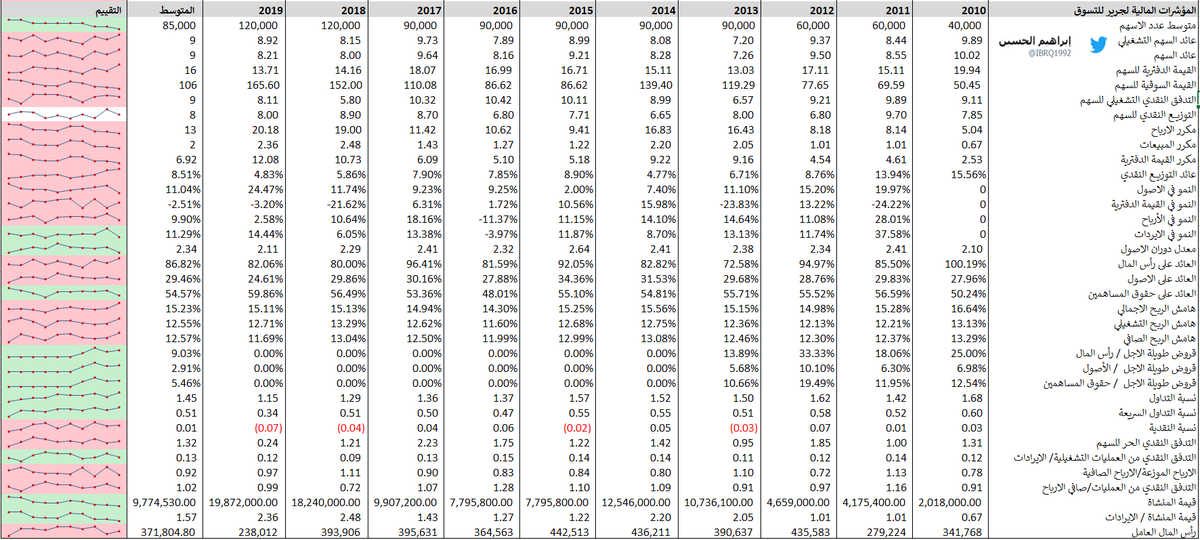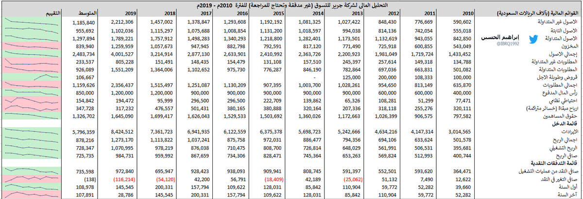 #تحليلات_إبراهيم | القوائم المالية وتحليل المؤشرات المالية لشركة #جرير للفترة (2010-2019م) ومقارنة متوسط الفترة مع نتائج 2019م.📊