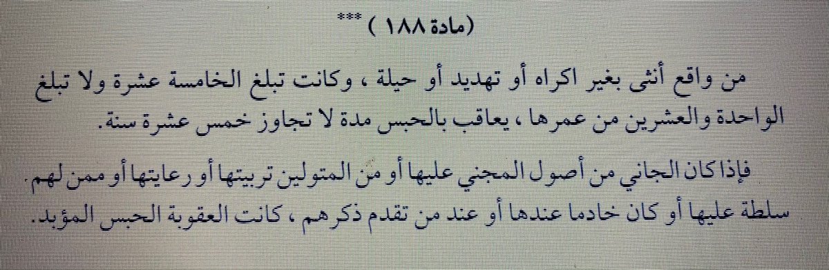 القانون بالتعديل الجديد - في علاقات الابوة او الرعاية او السلطة ـ افترض وجود نوع من الاكراه، بسلطة الجاني على المجني عليه. سواء كانت ابنته او ربيبته او فتاة يرعاها او طالبة او موظفة لديه او خادمة. فسلطته عليها تلغي رضاها، ولو كانت راضية فعلا، وكأنّ الفعل كان بالاكراه بالمطلق.
