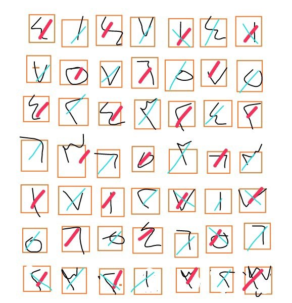 2- كان عندي الكثير والكثير من خيوط البداية والنهاية اللي لازم أخفيها؛ 2×49 مربع + 4×6 خطوط التشبيك + خيط البداية والنهاية للإطار، بعملية حسابية بسيطة طلع عددها 124 خيط (والواقع إنها كانت أكثر لإني كذا مرة اضطريت أقص الخيط في النص).