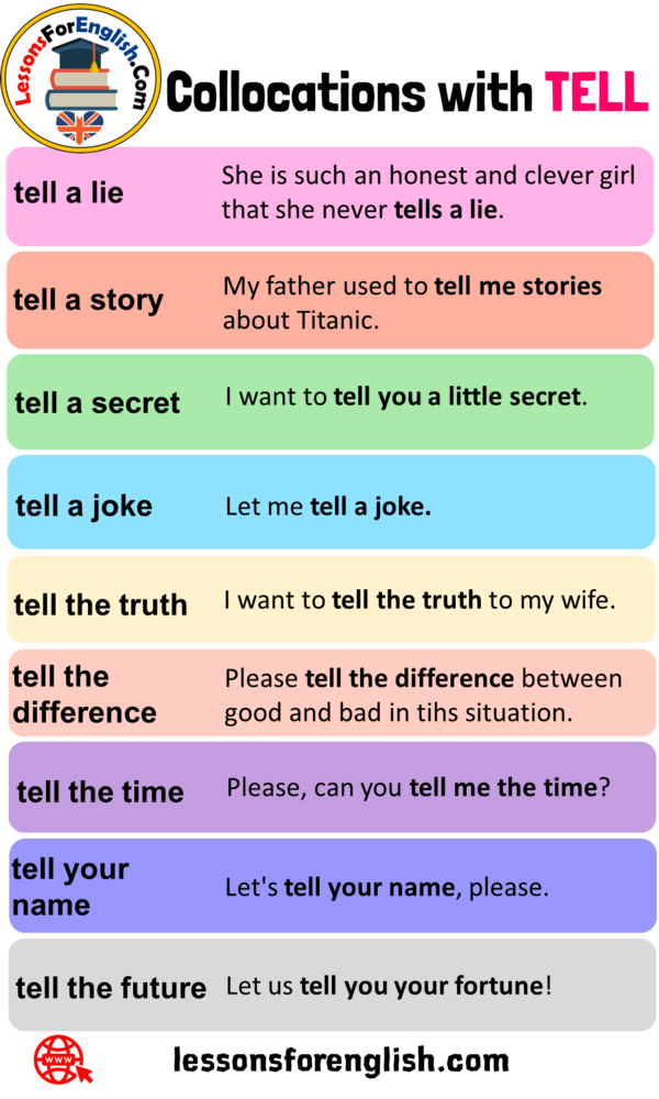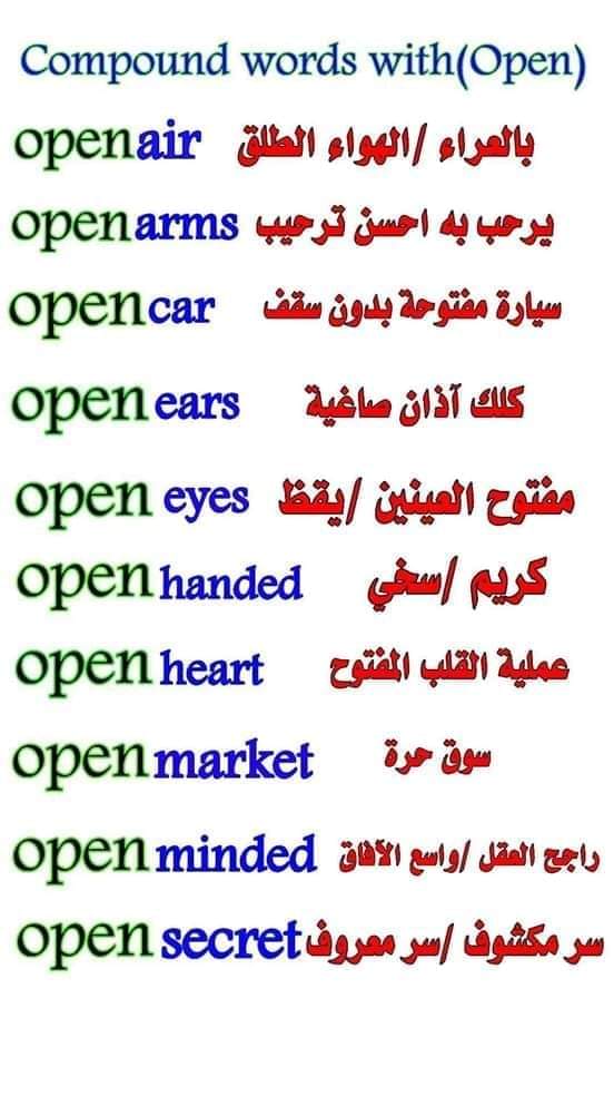 وهنا على سبيل المثال بعض المتلازمات اللفظية مع الكلمات التالية (open - heavy - tell -make )