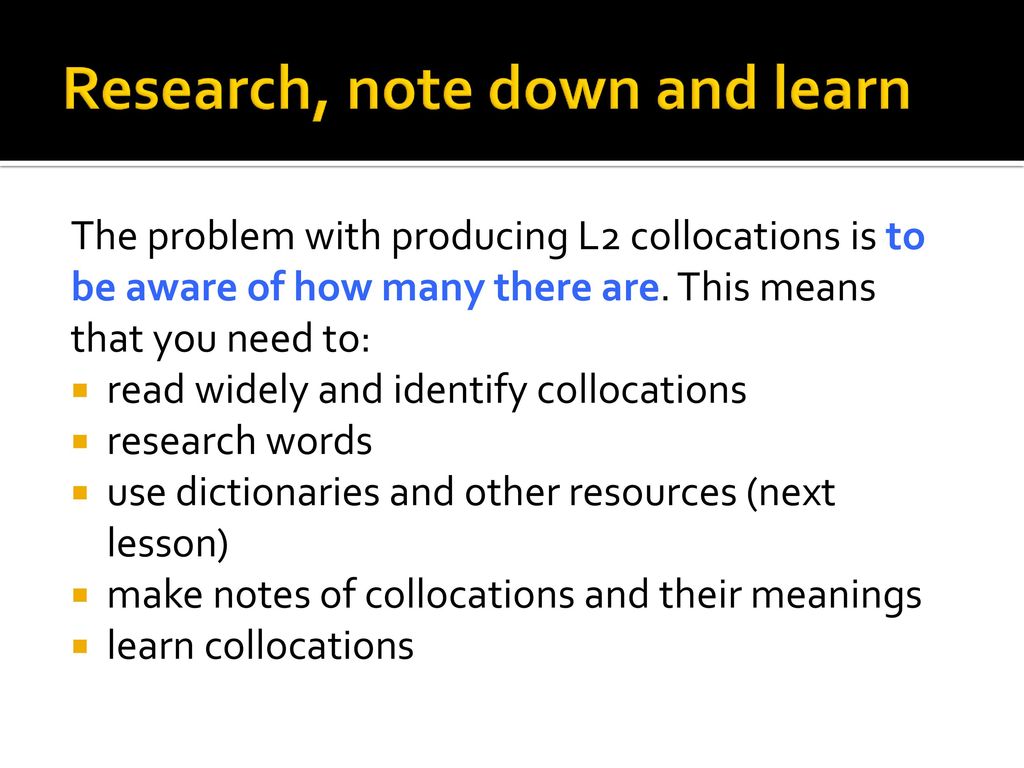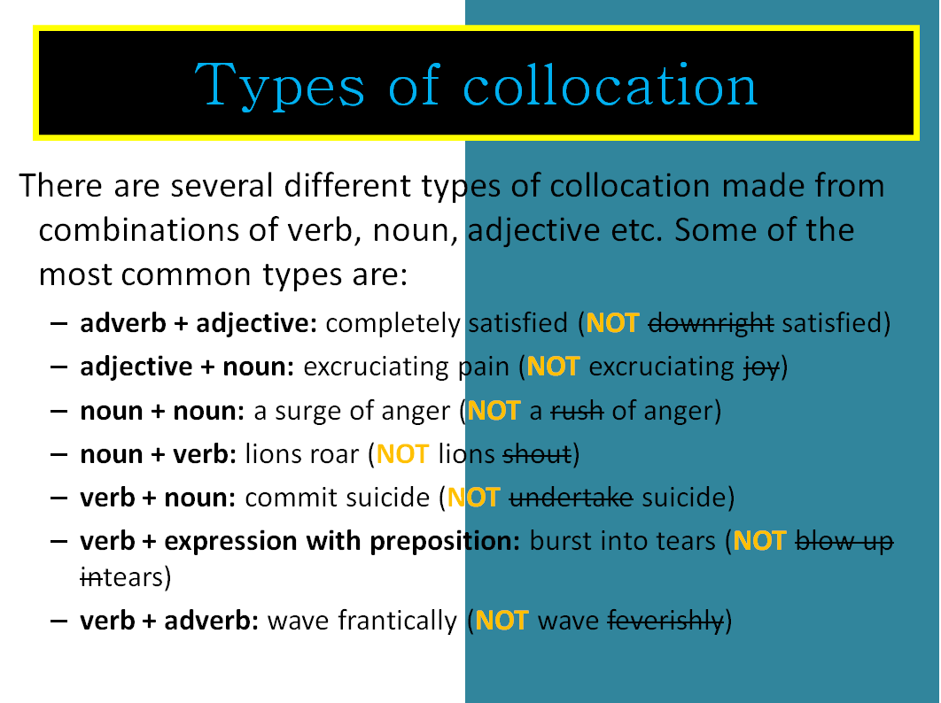 Collocations = Word partnerships = Words that go together.