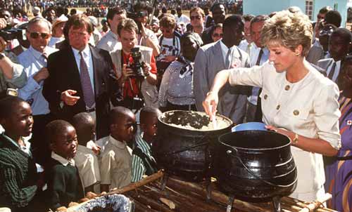 ارتبط اسم الأميرة ديانا طوال حياتها القصيرة بالاعمال الخيرية وكان هذا سبب من اسباب حب الناس لها حيث كانت تستخدم شهرتها في زيادة الوعي لقضايا كثيرة منها دعم الغاء استخدام الألغام الارضية كما كانت من أول المشاهير الذين دعموا مرضى الإيدز حيث كانت ضيفة شرف في افتتاح أول وحدة مخصصة