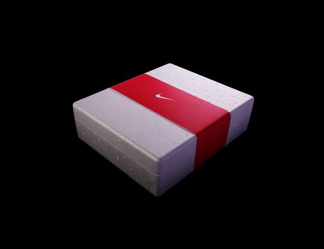 الاصدار كان في بوكس بسيط جدا زي اللي بيتم استخدامه لحفظ المثلجات ملفوف بشريط أحمر عليه لوجو نايكي