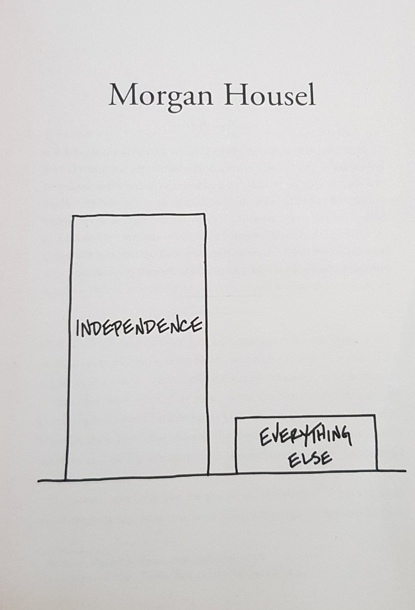 الاحتفاظ ب٢٠٪ نقدا. ولكن لأن مورجان يولي الاستقلالية أهمية كبرى فهو يفعل هذا. لايريد أن يضطر لتسييل أسهمه اذا حدث طارئ ويقطع سلسلة التراكم (compounding) ويكاد يجزم ان الطوارئ حادثه لامحاله وقد تأتي على شكل انخفاض في الاسهم.