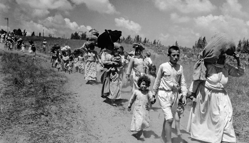 4- خلال فترة الحرب تلك، المعروفة فلسطينياً بـ ”النكبة“ تم تهجير نحو 85% من الفلسطينيين (نحو 720.000 شخص) وخرجوا إلى دول جوار فلسطين (لبنان - سوريا - مصر - الأردن) كلٌ حسب الدولة الأقرب له، مثلاً خرج أهالي مدن شمال فلسطين إلى سوريا ولبنان.