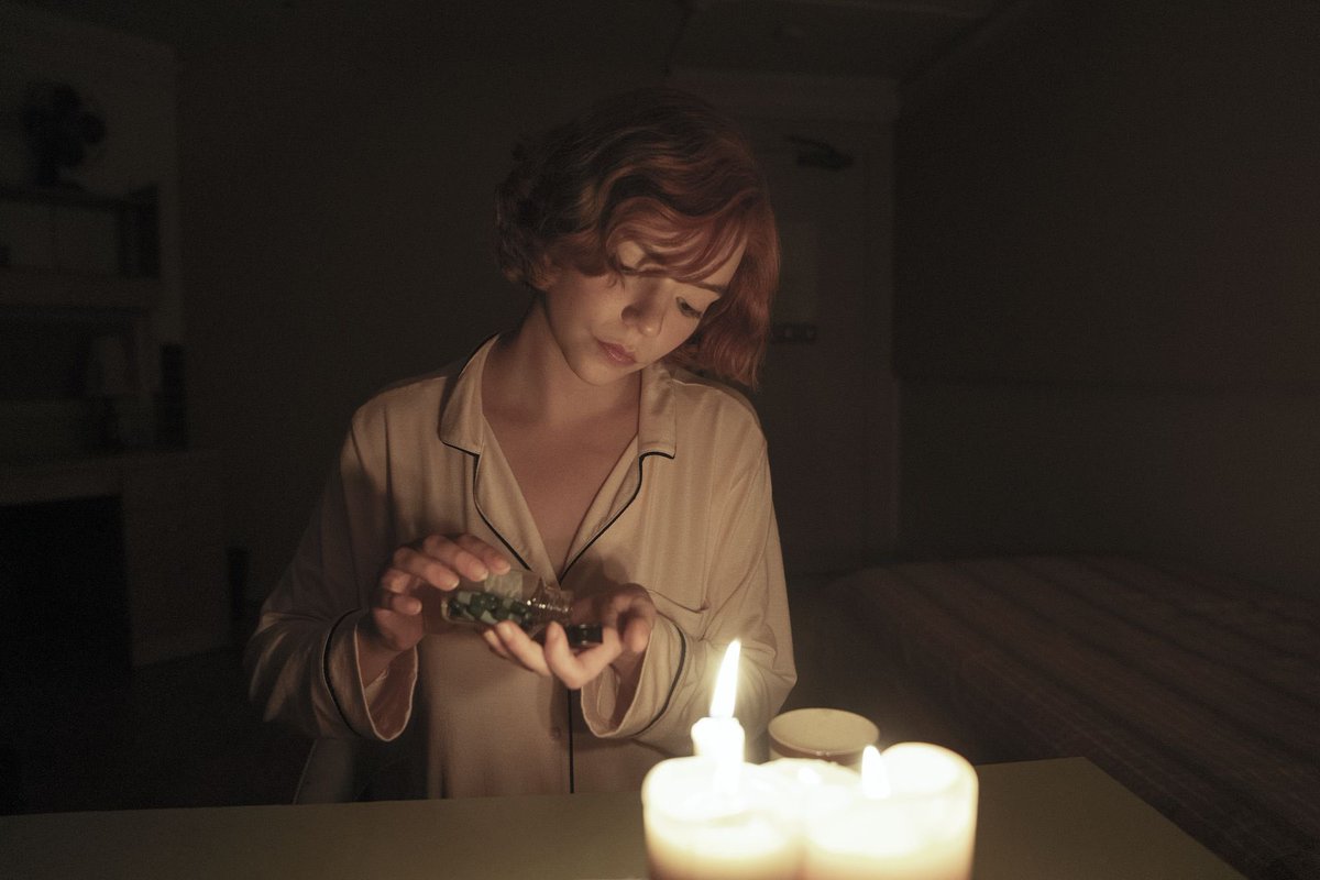 وبما ان القصة غير حقيقية، ذكر المخرج قصة بيث والادمان ثم العبقرية ومن هنا اظهر ايجابية الادمان الذي انعكس في عبقريتها ولكن دون اي يطرح اي سلبية وتبعات هذا الادمان ! فالتعاطي الى الان غير مربوط بحدة الذكاء وهنا نذكر عبقري الشطرنج بوبي فيشر الذي ابهر العالم اجمع بذكاءه في اللعبة +