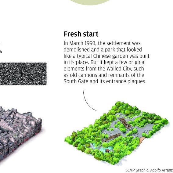 وبعد ذلك قامت الحكومة الصينية بتدخل وتعويض سكانها وهدم المدينة في عام ١٩٩٤ وتم استبدالها بمنتزه مليء بالحدائق والنوافير والقطع الأثرية من المدينة والحفاظ على الشكل #العمراني والتي تم تحوليها لنصب تذكاري وطني.