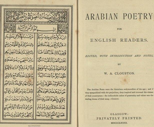 حررها وقدمها كلوستون. تبدأ مجموعة المختارات، التي يتألف أغلبها من نسخ أعيدت طباعتها لترجمات سابقة لمجموعات شعرية عربية، بنظرة عامة على المصادر بالإضافة إلى فصول عن تاريخ العرب القدماء وأعمالهم الأدبية. نُوقشت أيضاً ملاحظات على الشروح المختلفة للقصائد ومشكلات نسبة الأعمال