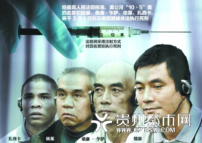 وأمام قوة الأدلة أقر المتهمون بالتهم المنسوبة إليهم، وفي تمام الساعة الثانية بعد ظهر يوم 6 نوفمبر 2012، حكمت محكمة كونمينغ الشعبية المتوسطة على المتهمين الستة، في جرائم القتل العمد ونقل المخدرات والاختطاف وسرقة السفن، بمايلي:
