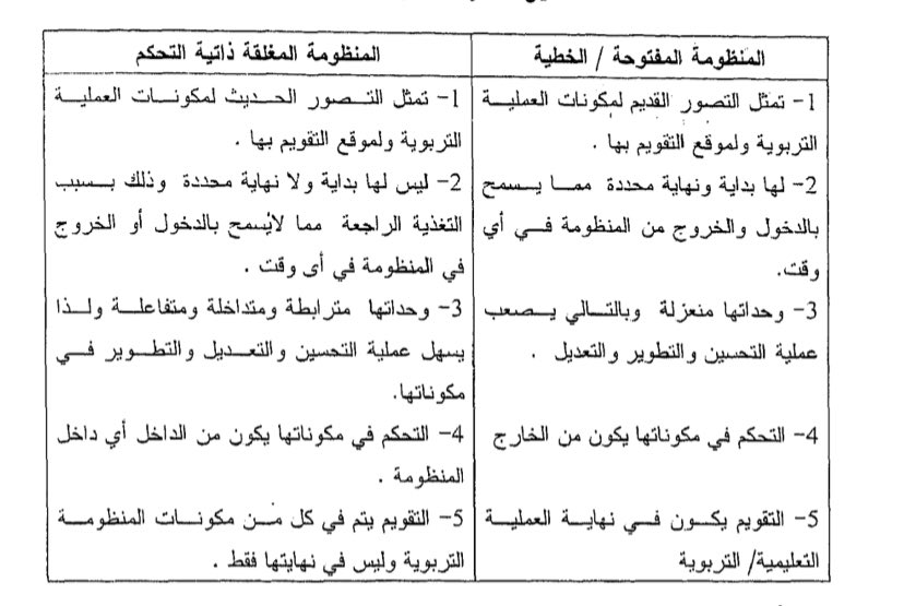 التصور الحديث للعملية التربوية التعليمية على أنها منظومة حلقية مغلقة، أي أنها عبارة عن مجموعة من الوحدات المتفاعلة والمتداخلة والتي بينها علاقات بحيث تكون نمط أو شكل موحد يؤدي إلى وظيفة محددة، وأي تغير أو تحسن في إحدى مكوناتها يؤثر بالضرورة في المكونات الأخرى من خلال عملية